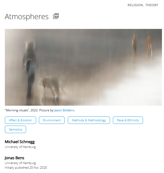 Michael Schnegg and Jonas Bens have recently contributed an entry on "Atmospheres" in the Open Encyclopedia of Anthropology. Find it here.